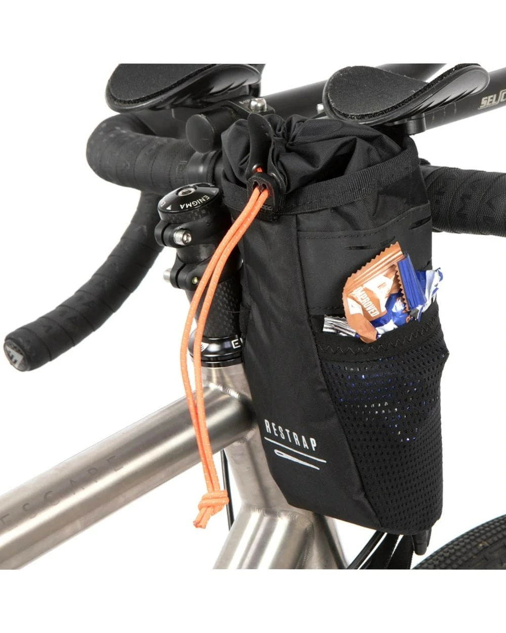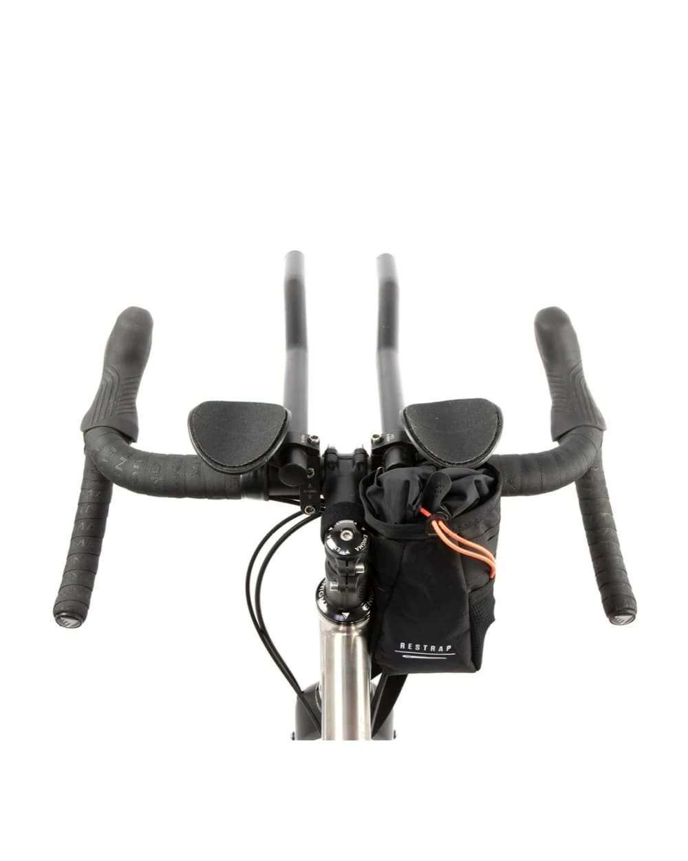 D’une capacité d’1,1 litre, la RESTRAP Race Stem Bag permet de jeter – puis d’attraper – un sandwich, une petite bouteille ou plein d’autres petites choses (smartphone, portefeuille, barres énergétiques…).