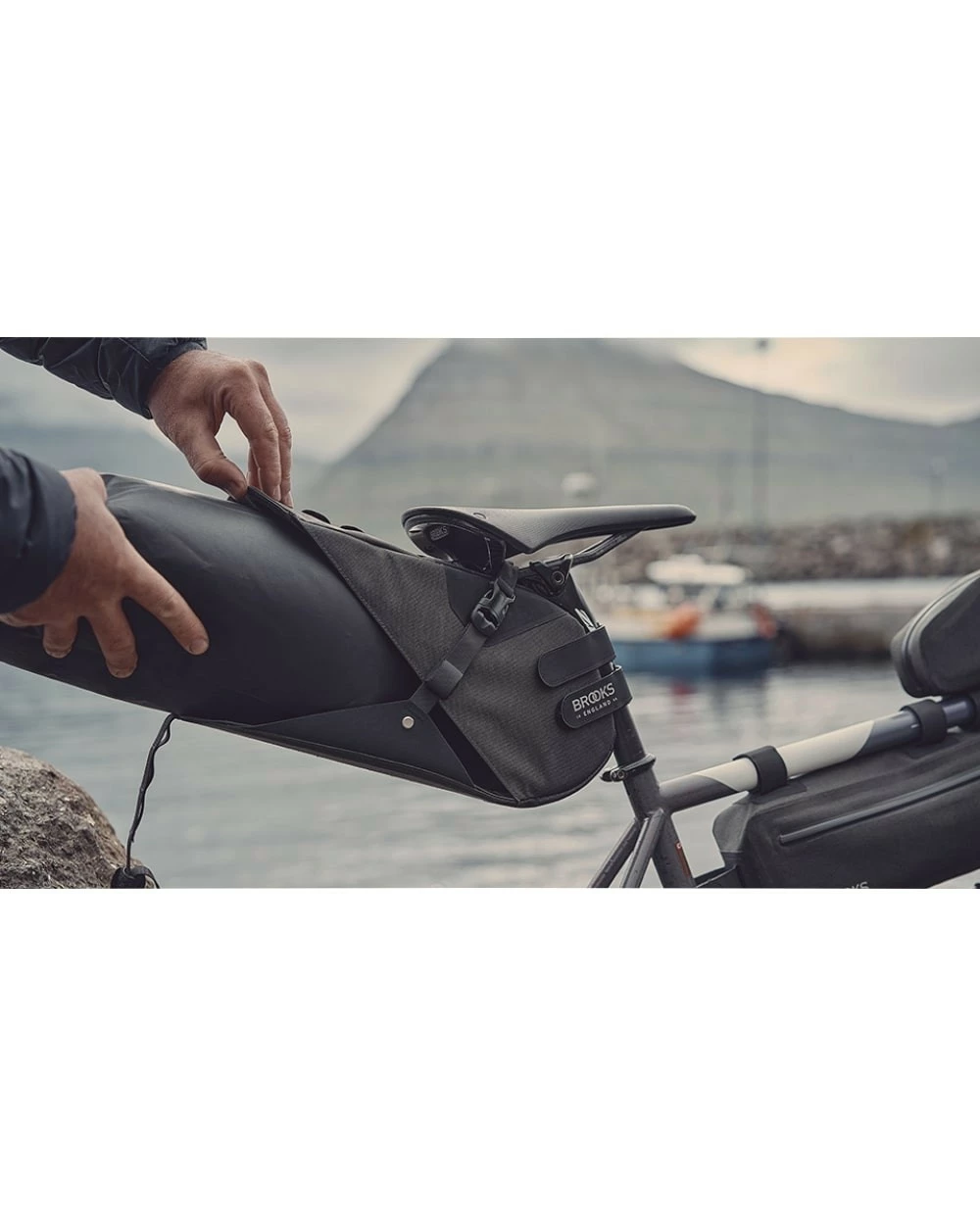 La Brooks Scape Seat Bag dispose de nombreuses sangles en Hypalon (textile ultra résistant) pour y accrocher des accessoires, un éclairage ou des petites sacoches de compléments.