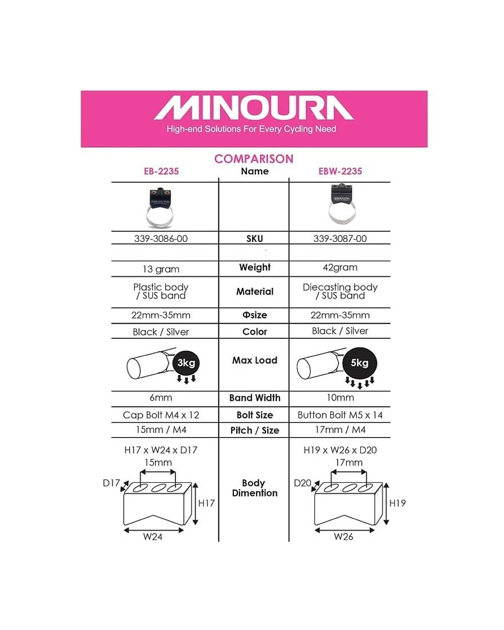 Avec son collier de support universel EB2235, MINOURA vous permet de maximiser vos espaces de chargement sur votre cadre. Il ajoute ainsi un « oeillet » supplémentaire à l’endroit de votre choix : sur le tube de selle ou diagonal si votre cadre ne dispose pas de perçage pour porte-bidon, au. niveau du boitier de pédalier si vous voulez ajouter un 3e porte-bidon, sur la tige de selle, la potence, le cintre ou même la fourche…