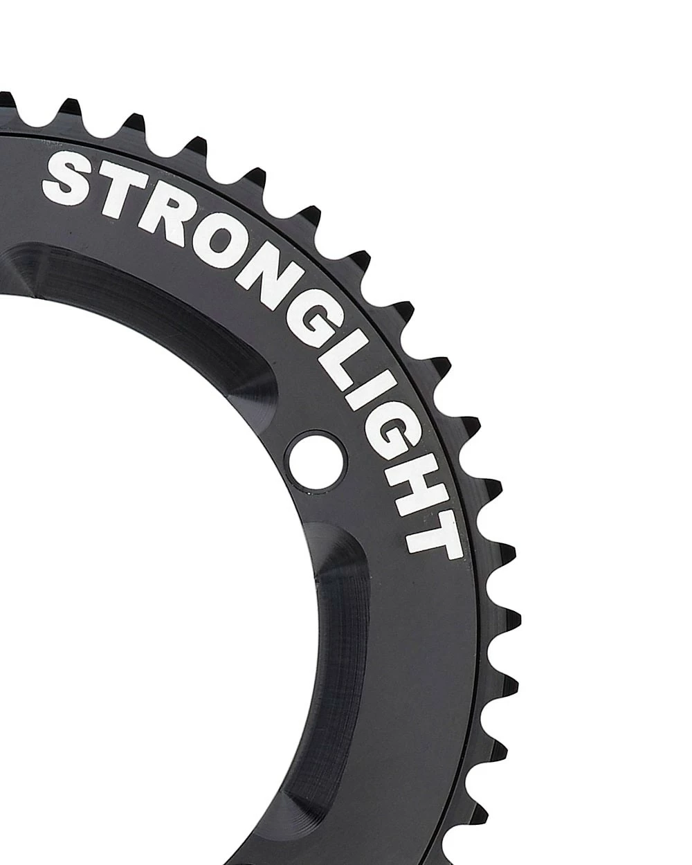 Le Stronglight Track 2000 est un vrai pédalier de piste, ce qui signifie qu’il est prévu pour une chaîne de 1/8″, plus épaisse et donc plus solide que les chaînes de vélo de route en 3/32″.