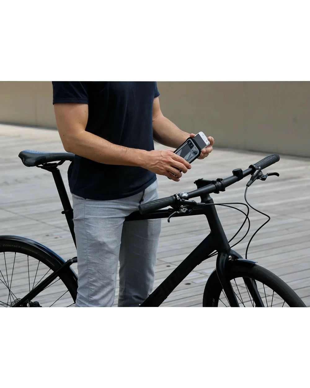 C’est simple d’usage, une fois le support aimanté installé sur votre guidon et votre mobile installé dans sa pochette, vous n’avez plus qu’à plaquer celle-ci sur le support et le tour est joué ! Vous pouvez même choisir de disposer votre smartphone en mode portrait ou paysage selon votre usage.