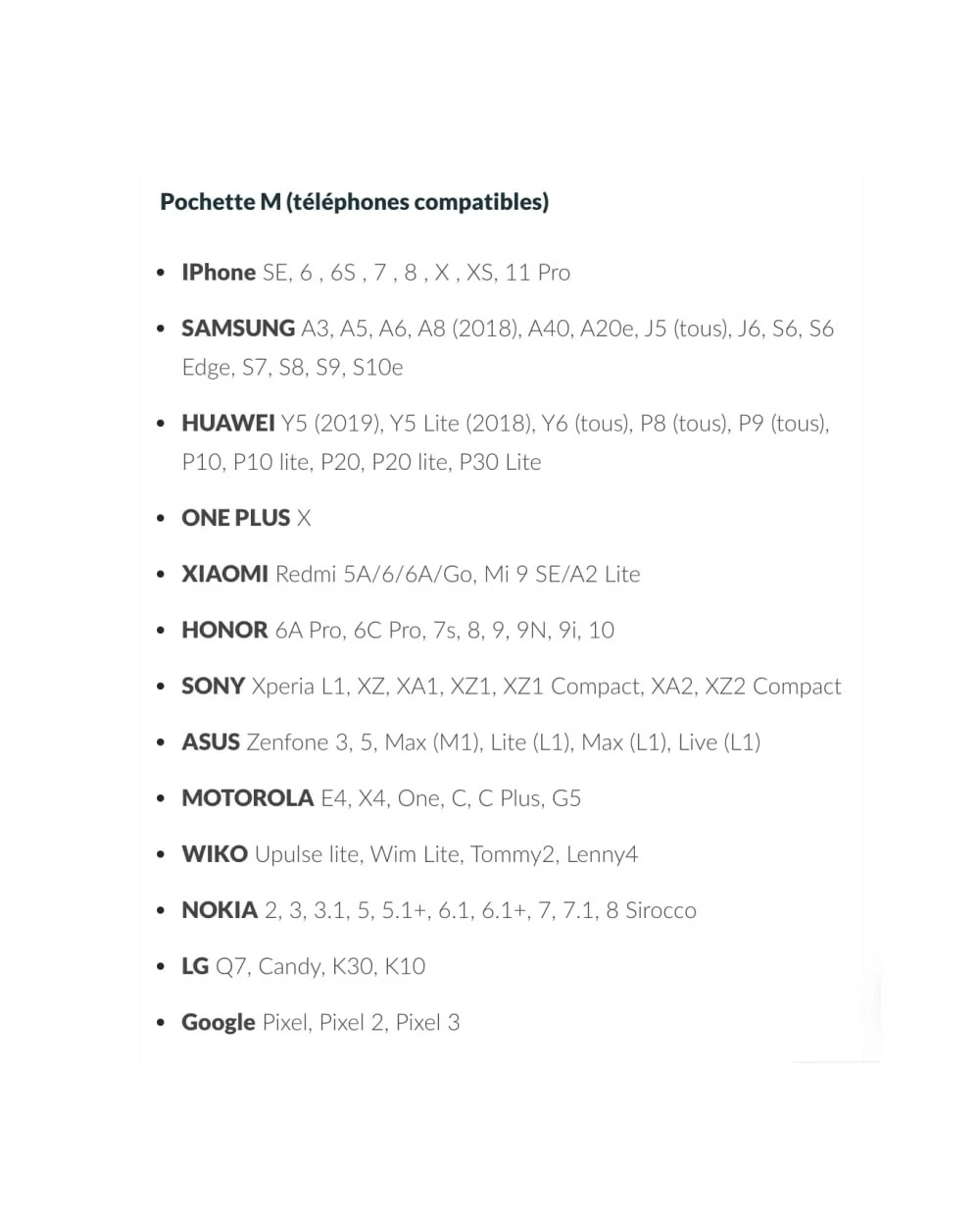 - Dimensions de la version M : 8,8 x 15,0 cm (pour mobile avec un écran jusqu’à 5,5″ – liste sur les photos)